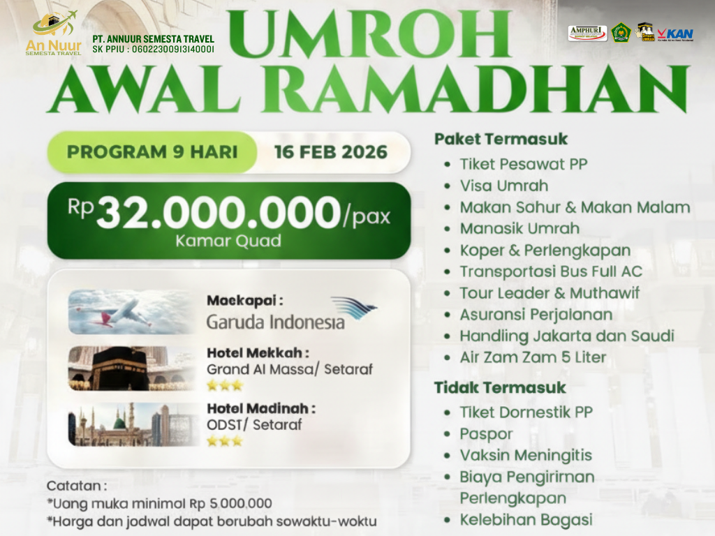 Pelunasan masimal H-35 dari Tanggal Keberangkatan